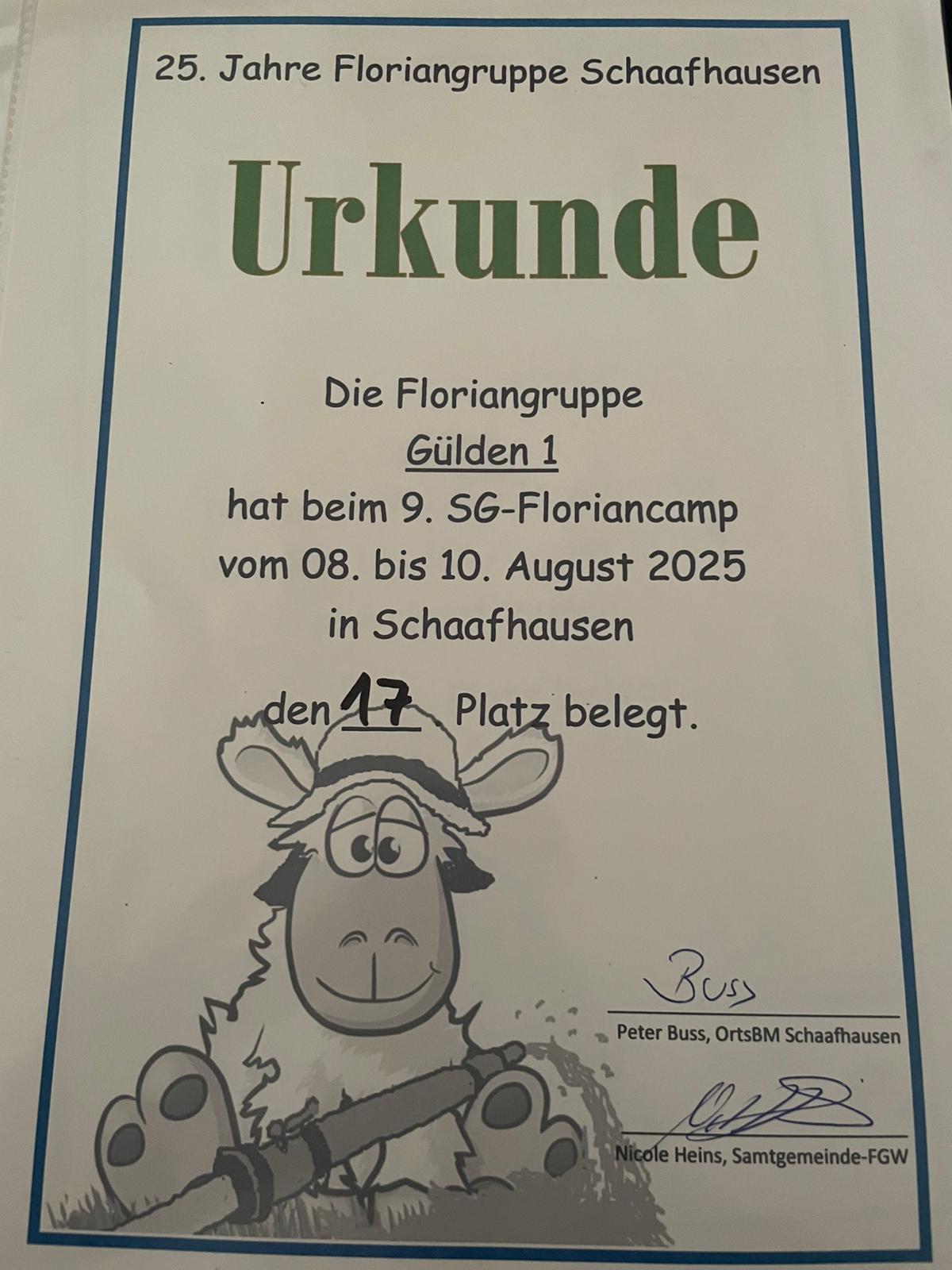 Auch die Kinderfeuerwehr Gülden war mit mehreren Gruppen vertreten. Beim „Spiel ohne Grenzen“ am Samstag belegten sie die Plätze 20, 17 und 15. Für Abwechslung und gute Laune sorgte ein vielfältiges Rahmenprogramm. Tagsüber nutzten die Kinder begeistert eine große Wasserrutsche, am Abend fand eine Kinderdisco mitten auf dem Platz zwischen den Zelten statt und bot Gelegenheit zum ausgelassenen Tanzen.