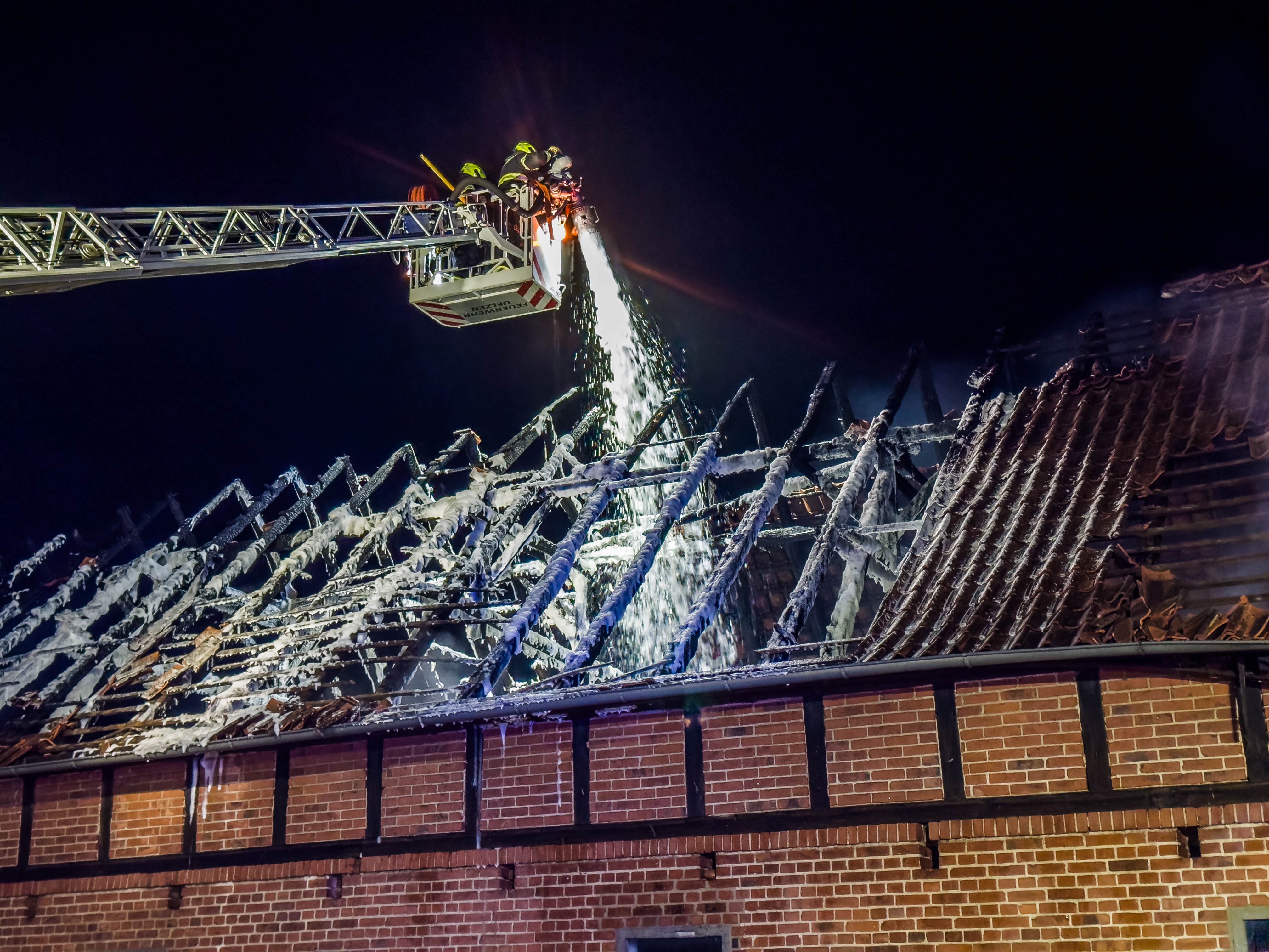 Der Einsatz endete nach rund sieben Stunden intensiver Löscharbeiten. Die Nacharbeiten mit Abbruch- und Sicherungsmaßnahmen dauerten bis in den Vormittag hinein an. Die Brandursache ist derzeit unklar und wird durch die Polizei ermittelt.