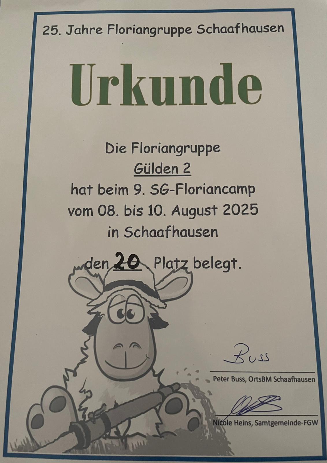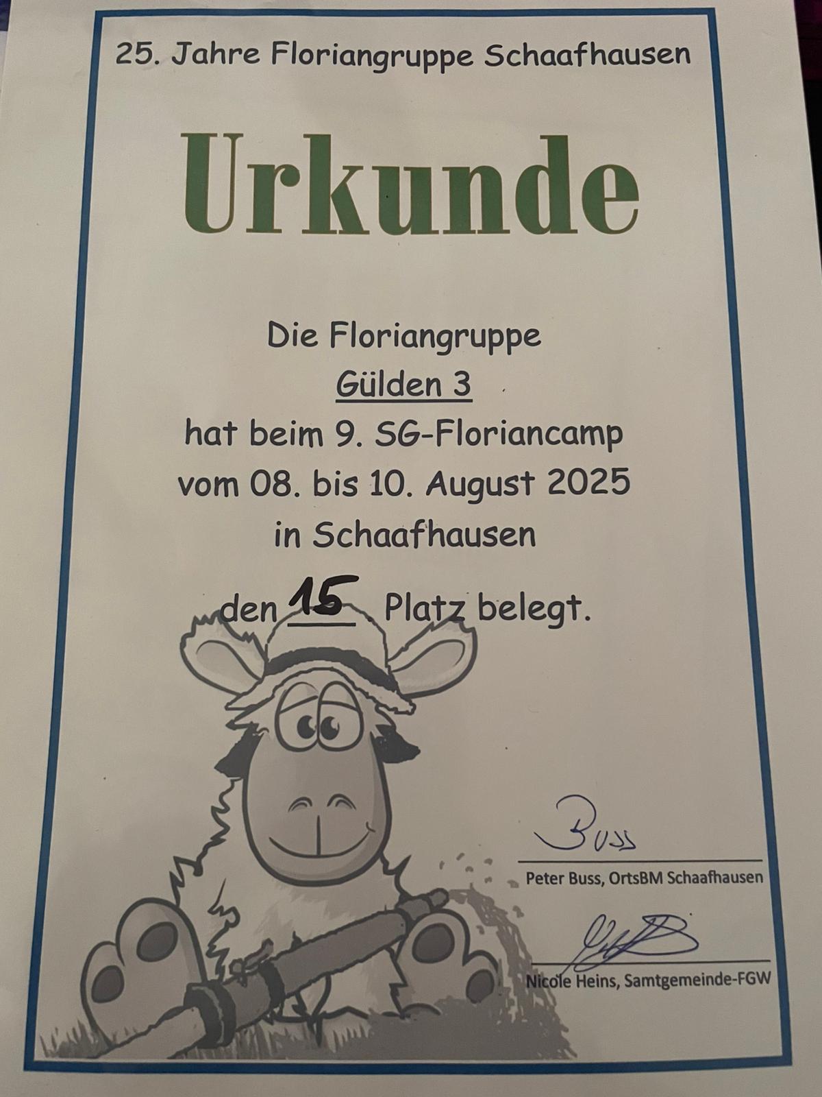 Auch die Kinderfeuerwehr Gülden war mit mehreren Gruppen vertreten. Beim „Spiel ohne Grenzen“ am Samstag belegten sie die Plätze 20, 17 und 15. Für Abwechslung und gute Laune sorgte ein vielfältiges Rahmenprogramm. Tagsüber nutzten die Kinder begeistert eine große Wasserrutsche, am Abend fand eine Kinderdisco mitten auf dem Platz zwischen den Zelten statt und bot Gelegenheit zum ausgelassenen Tanzen.