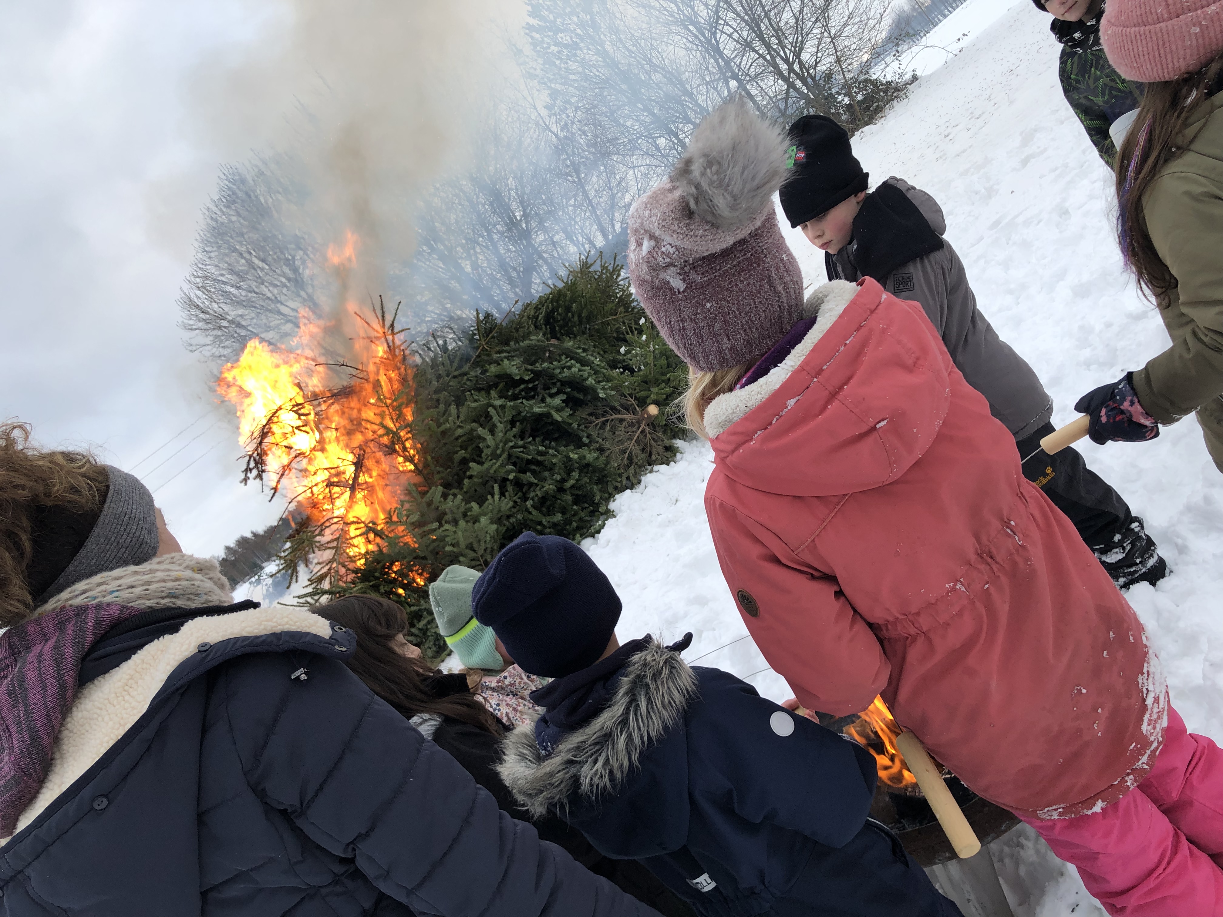 Eine Neuerung gab es in diesem Jahr am Nachmittag: Erstmals wurden die gesammelten Tannenbäume im Rahmen eines gemeinsamen Bäumebrennens genutzt. In den vergangenen Jahren waren die Bäume anderweitig verwertet worden. Um 14:00 Uhr traf sich hierzu die Kinderfeuerwehr gemeinsam mit der Jugendfeuerwehr, um den Aktionstag in geselliger Atmosphäre fortzusetzen.